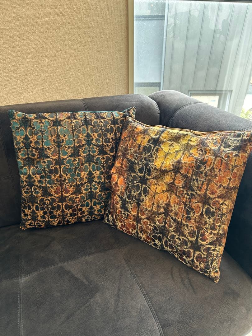 - こちらのクッションカバーの良さをレビューする為、携帯でパチリ。、、、撮りなおし、パチリ。、、、撮りなおし×4。、、、諦めました。私の撮った画像では伝わらないでしょうが、お値段以上の品質なのは判っていただけるのでは、、、。アジアンなクッションカバーのサイズは40×40が殆んどなのが残念。これも40×40、、、45×45あれば、色違いを2枚は欲しかったなぁ。