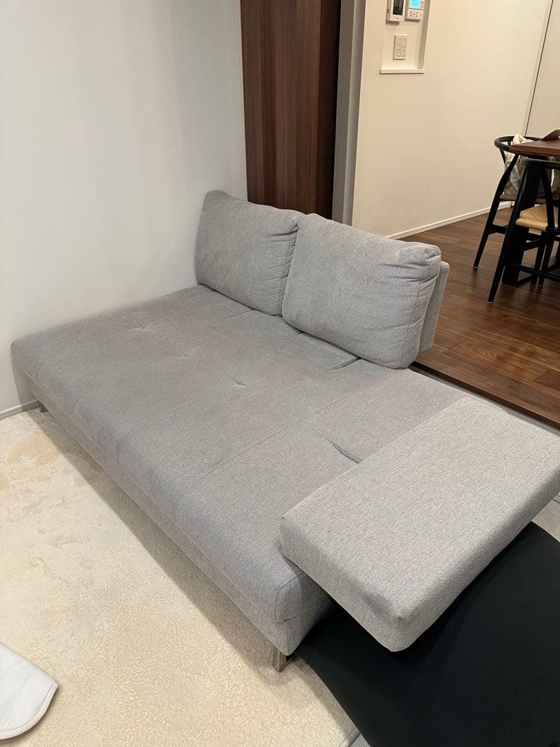 - 一人暮らし用に購入。 6畳の部屋に設置。配達時はフラットの状態で届いて思ったよりも大きいので部屋をかたづけておかないと大変です。 173cmの自分でも心地よくうたたね出来るし、友人がきた時は簡易ベッドとして使用しました。 クッションはなかなかやわらかいけど、使用していくとカバーの汚れが気になるのでふとんのシーツを敷いて使ってます。カバーが取り外せたらよかったのにと思うので★4つです。