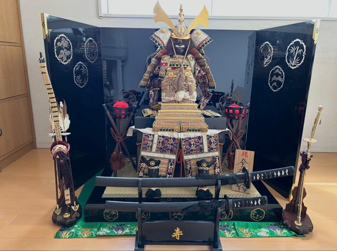 40年ほど前に大阪の\"人形の秀月\"で標準鎧平飾りを20万円位で購入しました。五月人形 武者人形 大木平蔵? 日本人形 骨董。屏風は出品してません。美品 平安晴峰 作 五月人形 鎧兜1式。 兜の右側の鍬形(くわがた)はしっかりと はめないと外れやすくなってます。【まちゃっぺこ様】五月人形飾り台、屏風セット 保管品。サイズ鍬形まで測ると 80cm位鍬形なしだと65cm位鎧は全て櫃の中にすっぽり収納できます。【展示品限り】五月人形 兜 鍬形 ケース飾り ※閉店セール K40。思い切って処分することにしました。岡本太郎 ミニ 鯉のぼり 白 赤 セット 子どもの日【送料無料】。兜 五月人形 平安瑞祥作 螺鈿屏風。五月人形のみの出品です。櫃と緑の敷物は含めます。SKO83 端午の節句 5月武者のぼり リメイク 太閤秀吉 長さ174㎝位。藍染め 鯉のぼり 3体セット 名入れあり 手染め。両サイドの刀も出品してません。購入時のまま、ビニールが被ってるところもあります。E2 高級桐 銀塗り台巾60㎝位 五月人形台屏風 5月兜台 5月屏風 鎧兜飾り。◻️希少◻️岡本太郎 鯉のぼり。櫃(ひつ)は箱のことです。少し傷ありますが鎧で隠れます。黄金 武者絵織 のぼり絵 旗 秀吉 9m 特大サイズ。hina様 兜 五月人形 鯉のぼり おしゃれ兜 リバティ ハンドメイド つまみ細。40年経過しても鎧、櫃、きれいな状態です。さすが有名なお店の品物は違うとつくづく思います。サイズ5m 東レ ナイロン 鯉のぼりセット 太郎鯉 7匹+吹き流し。春嶺銘 節句屏風 四曲一帖 海魚図 屏風 幅約165㎝ 背景 節句飾り。よろしくお願いします。レビュー